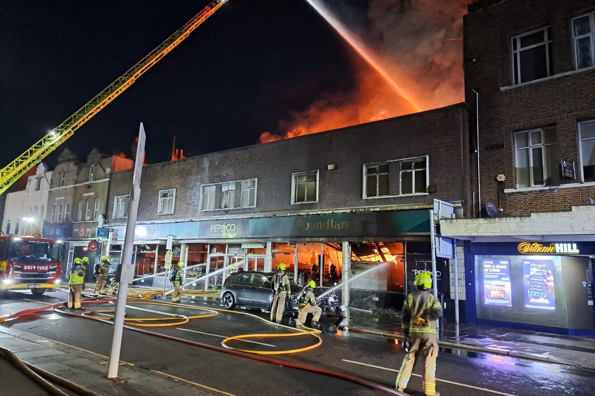 Huge fire at London Poundland shuts high street while 100 firefighters tackle blaze
