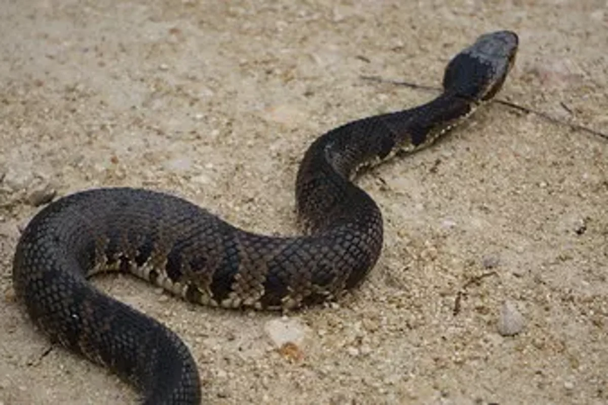 Cottonmouths, also known as water moccasins, seek higher and drier land during extreme floods