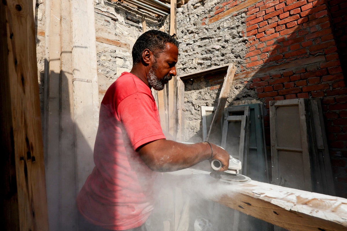 Buildings are being dismantled and carefully rebuilt across the historic district